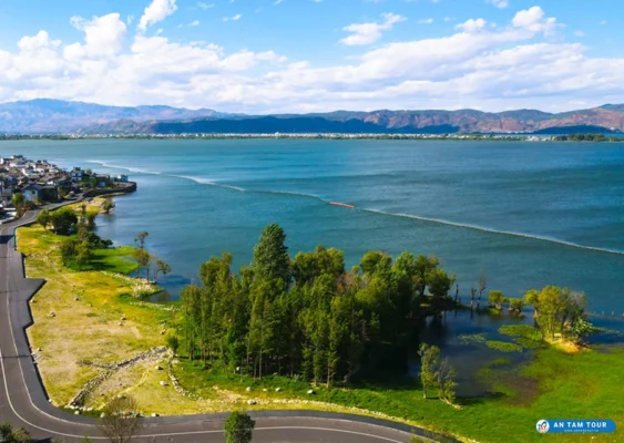 Tại đây, đoàn có thể đi xe đạp chạy trên tuyến đường đạo sinh thái cạnh Hồ Nhĩ Hải, check in cung đường chữ S – nơi đóng bộ phim Đi đến nơi có gió. (Chi phí thuê xe đạp tự túc).