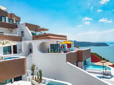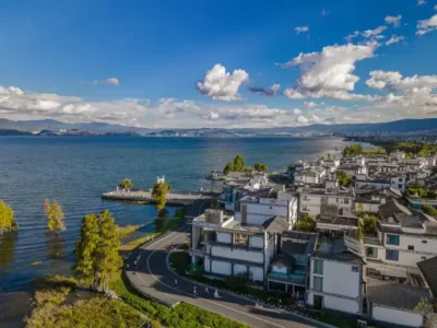 Đoàn di chuyển đến Santorini – phiên bản “Địa Trung Hải thu nhỏ”, view hướng ra hồ Nhĩ Hải (không bao gồm xe điện 10 tệ/khách)